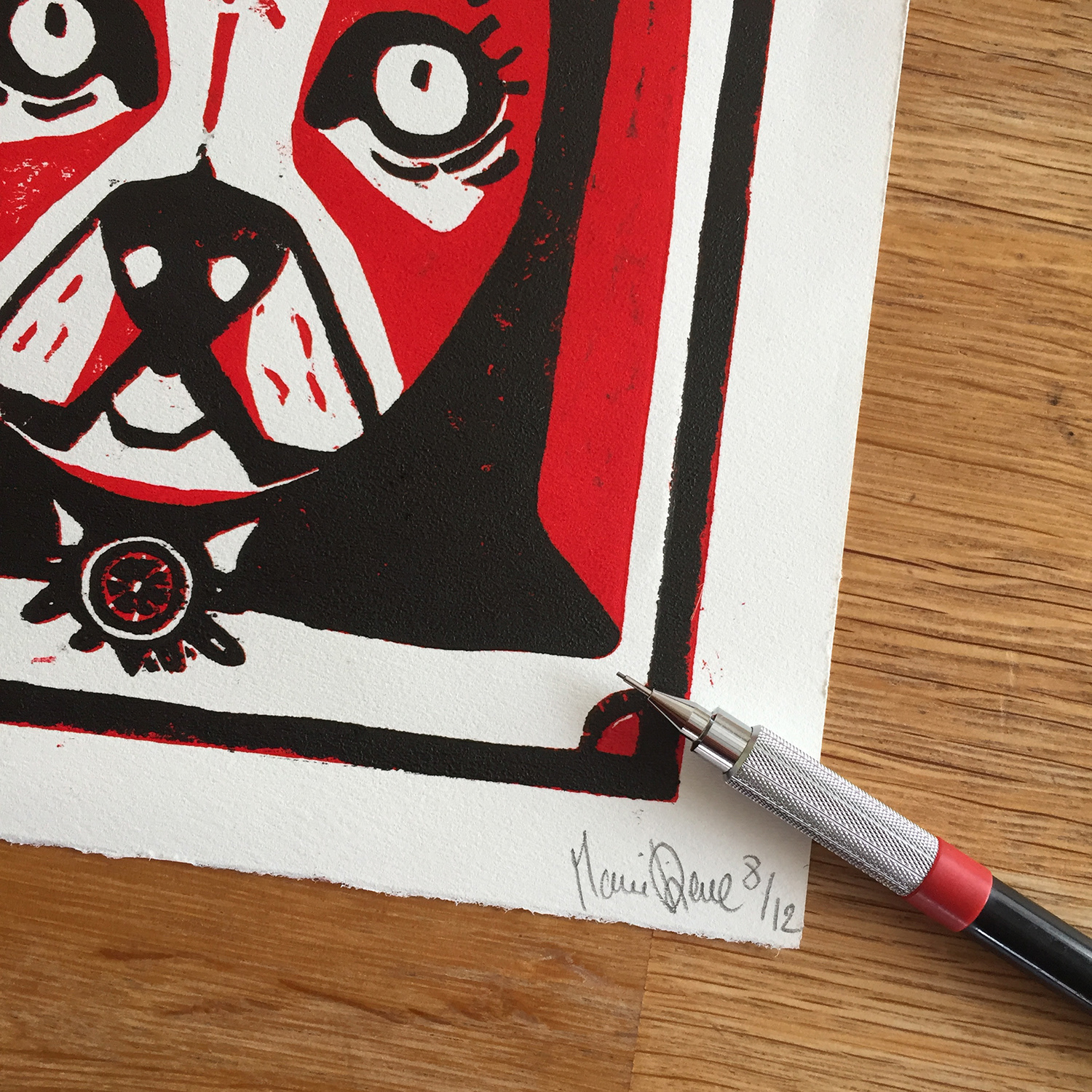 BETTY WOOD Linogravure à la plaque perdue 17,5 x 17,5cm - encrée en deux passages- numérotées et signées de 1/10 à 17/10 Impression sur bois. Chaque impression est unique.